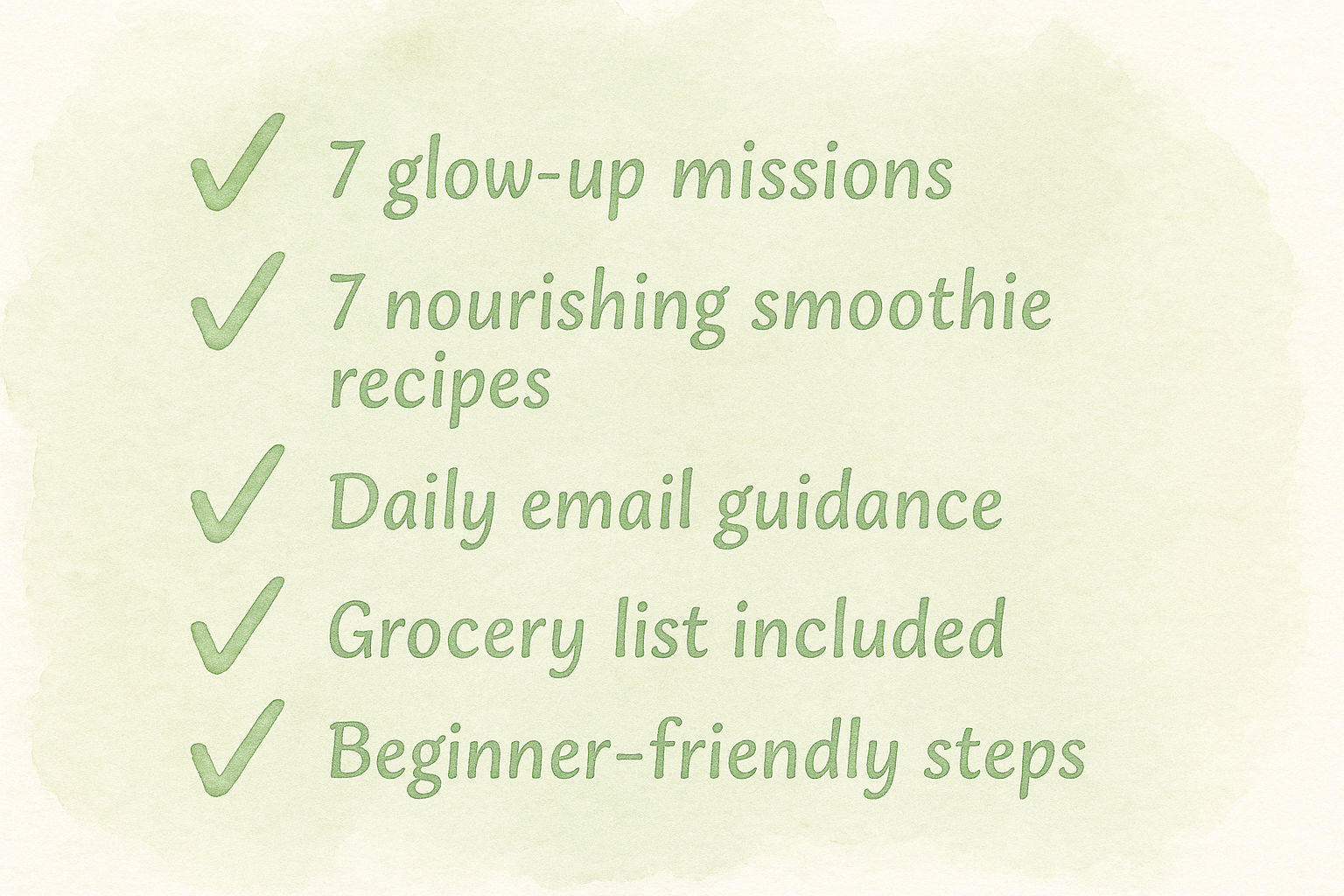 If you’re ready for a gentle, structured way to refresh your routine, try our free 7-Day Glow-Up Challenge. Simple steps, nourishing smoothie recipes, and daily email support designed to help you feel brighter and more balanced.